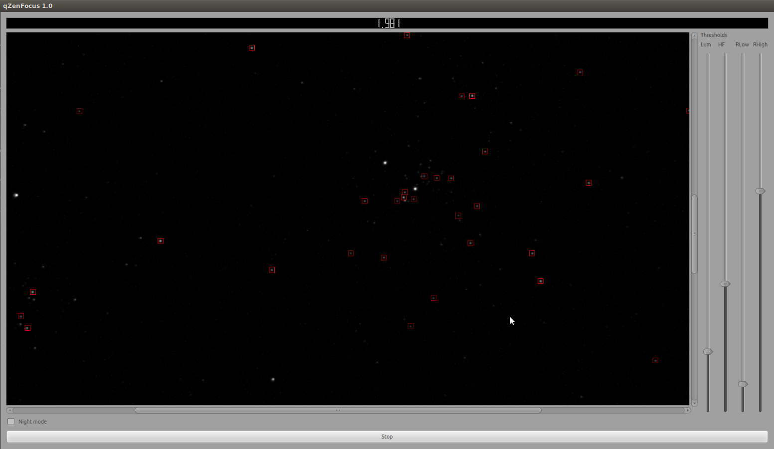 Le logiciel doit aussi afficher l'image pour permettre un réglage 'aux aigrettes', si l'on veut, et doit avoir un mode nuit pour ne pas perdre notre chère vision de nuit.